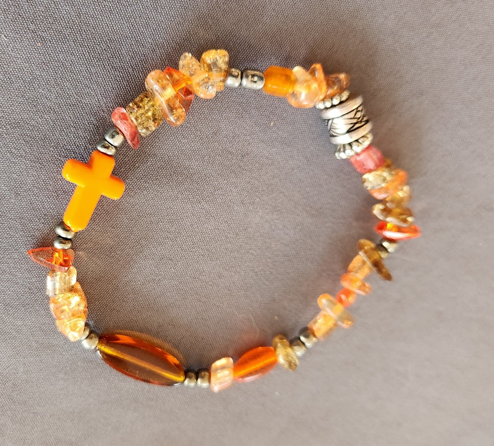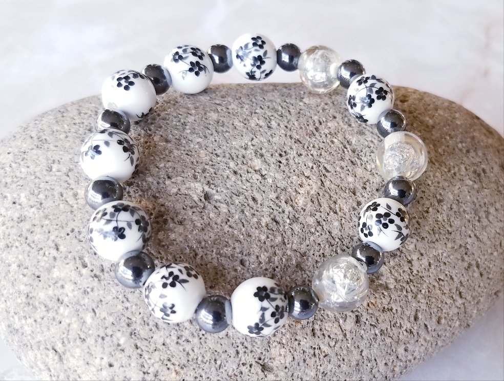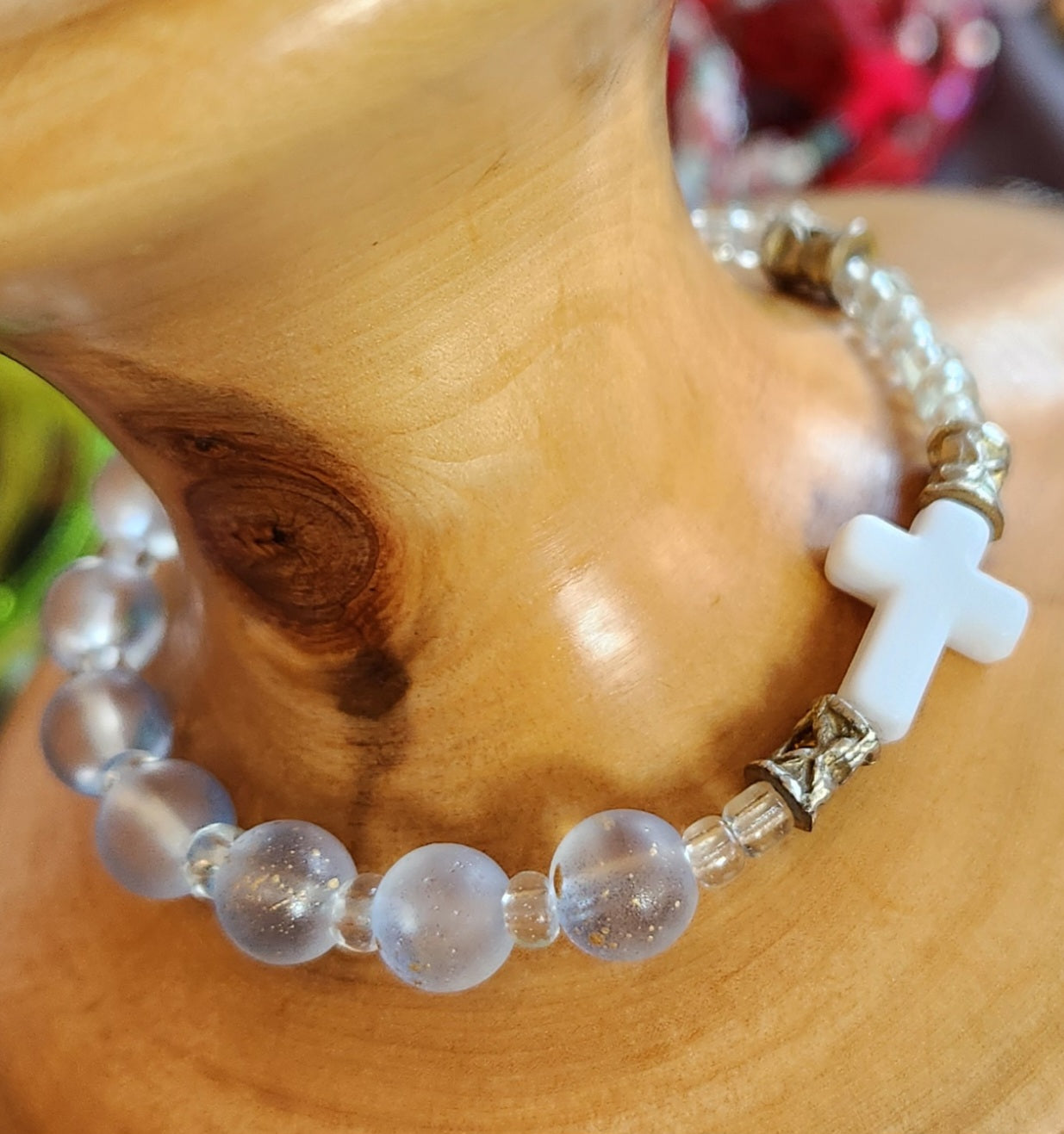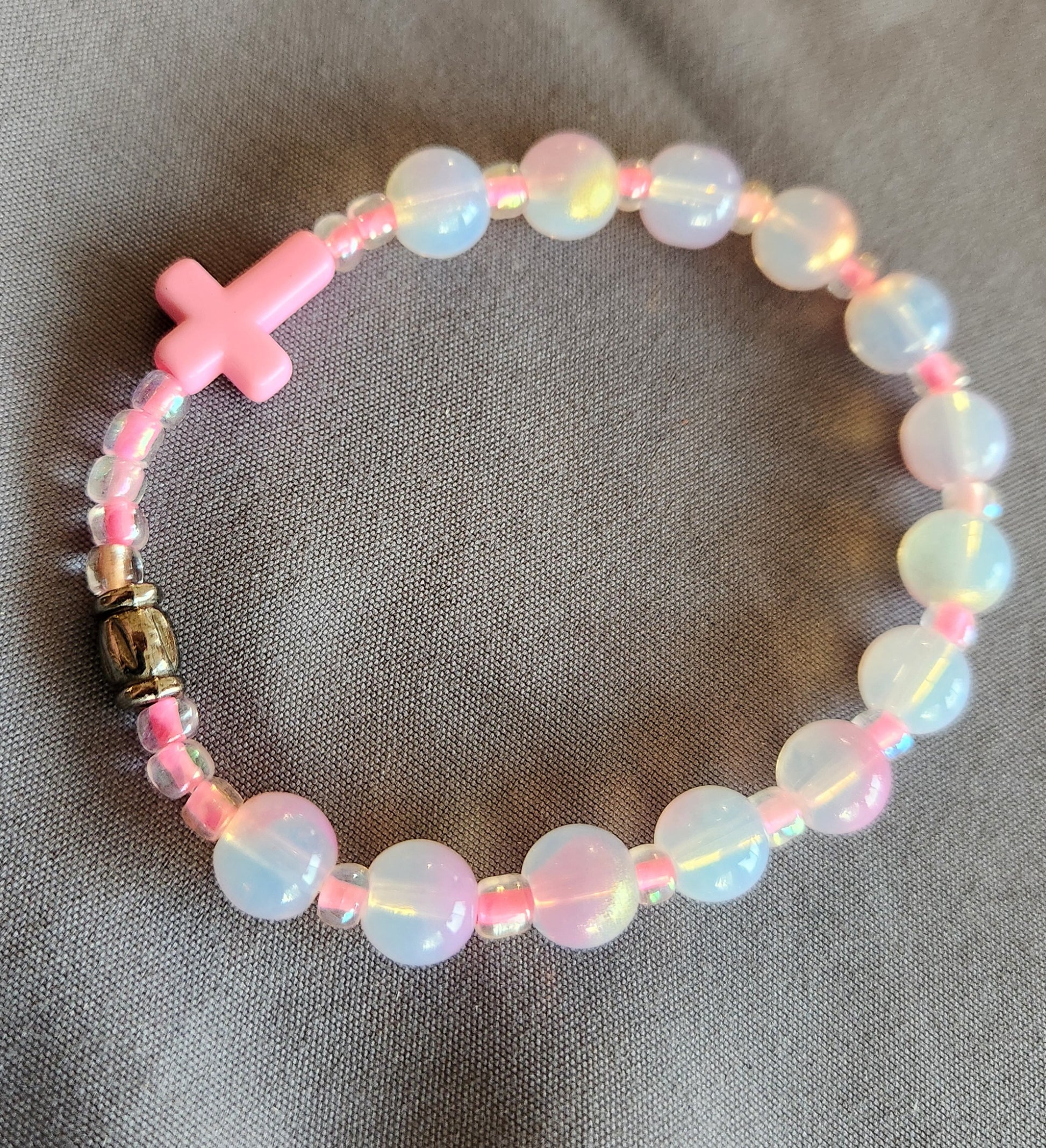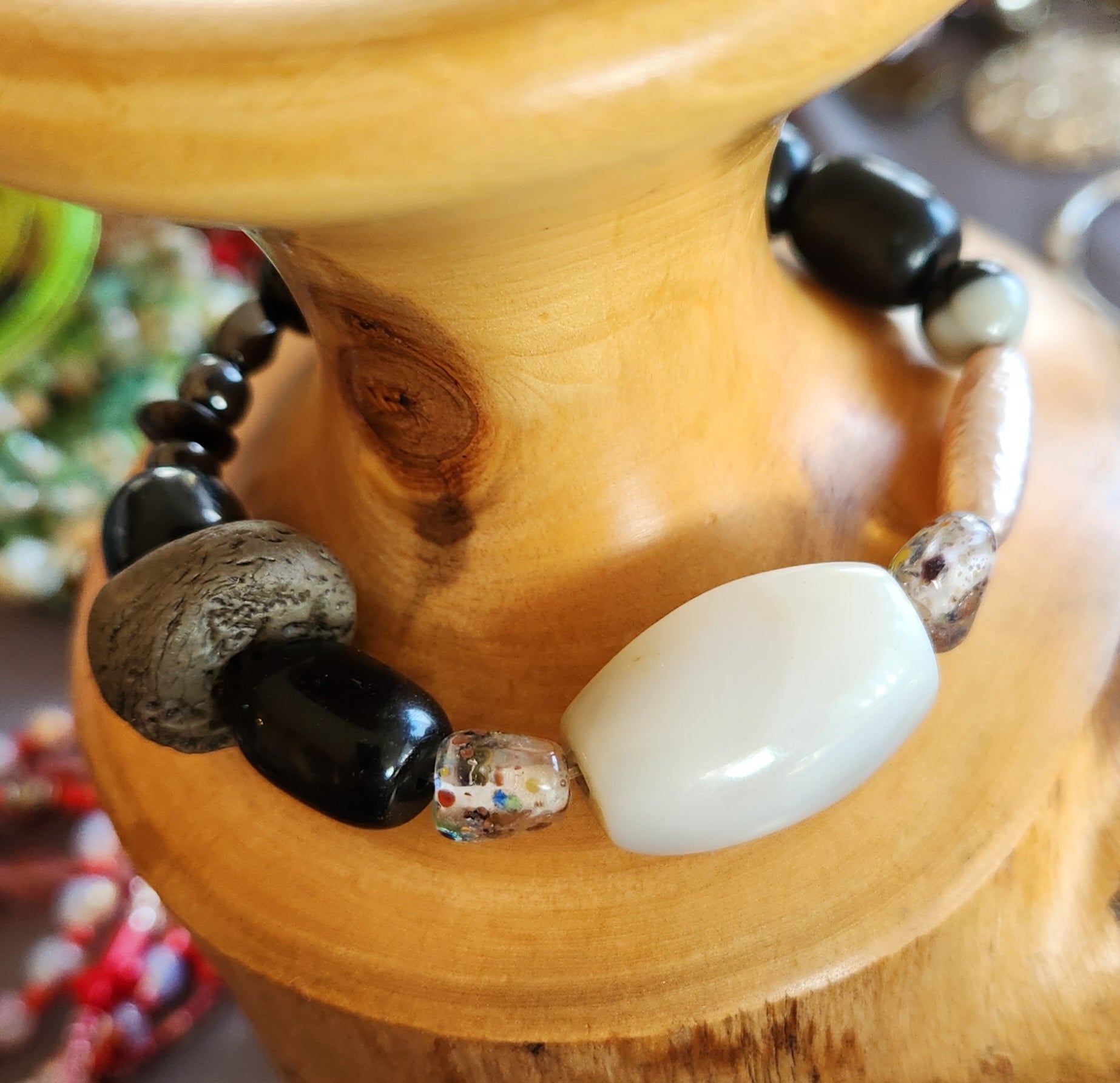 Shimmering glass and stone beads interweave with delicate acrylic accents on this stretch bracelet. Choose from a variety of colors to add a touch of elegance to any outfit. Comfortably sized at 7 to 7.5 inches for a perfect fit. Exude luxury and sophistication with every wear.