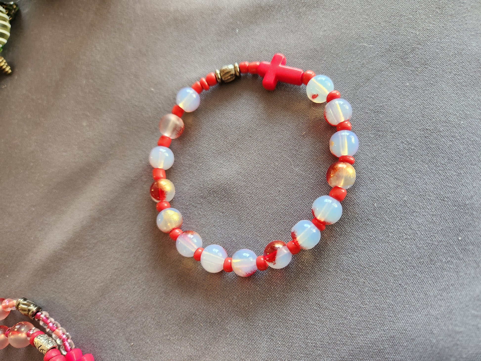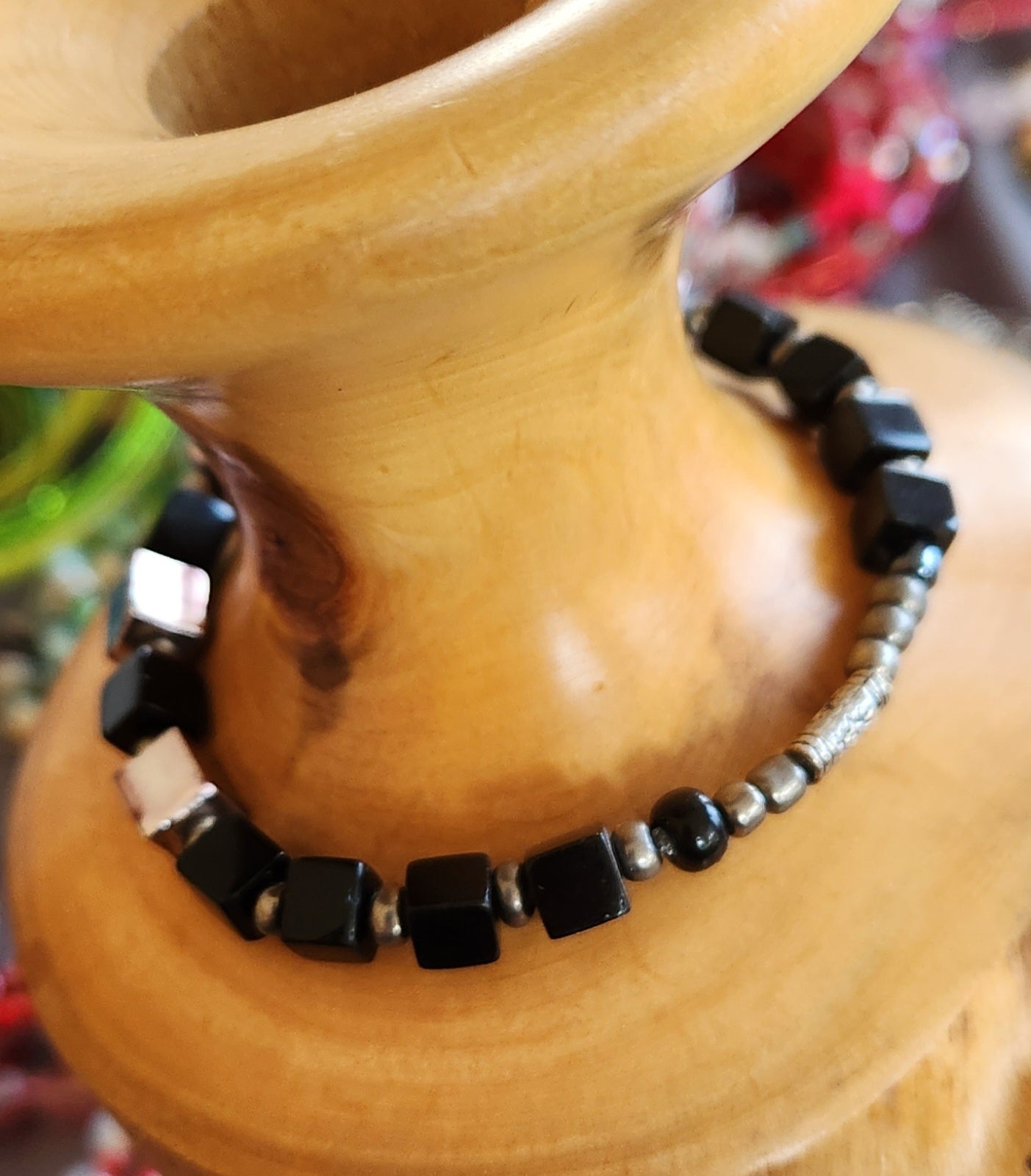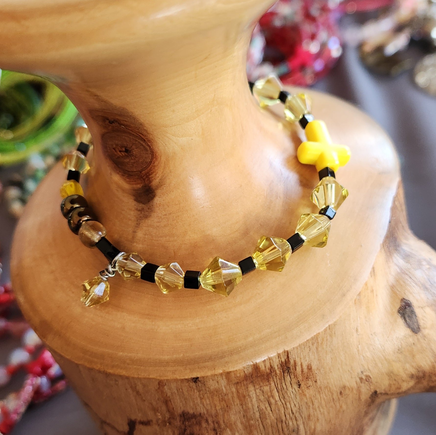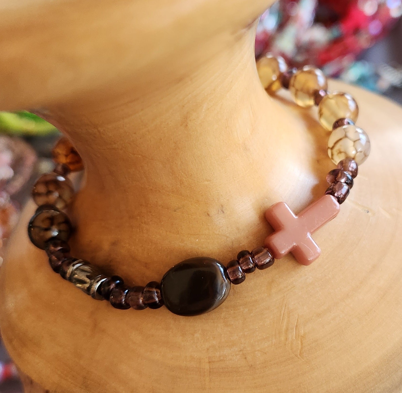 Shimmering glass and stone beads interweave with delicate acrylic accents on this stretch bracelet. Choose from a variety of colors to add a touch of elegance to any outfit. Comfortably sized at 7 to 7.5 inches for a perfect fit. Exude luxury and sophistication with every wear.