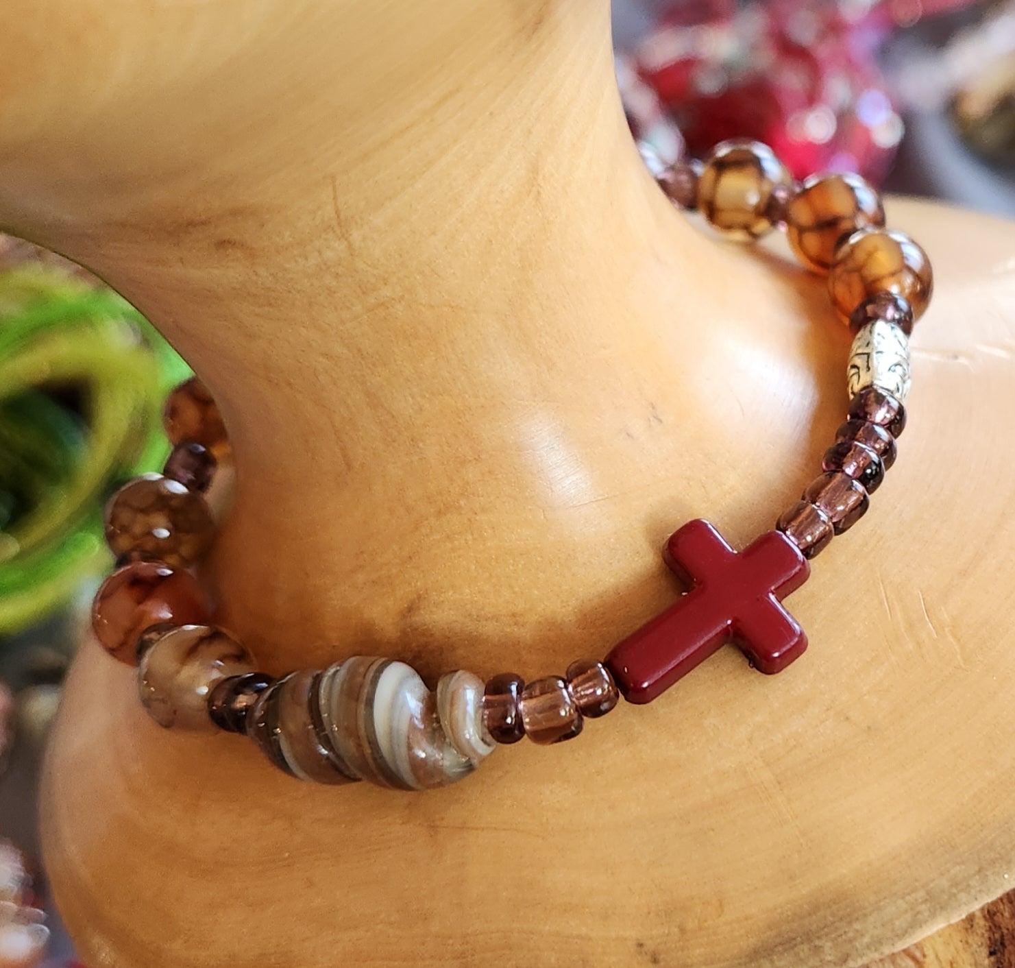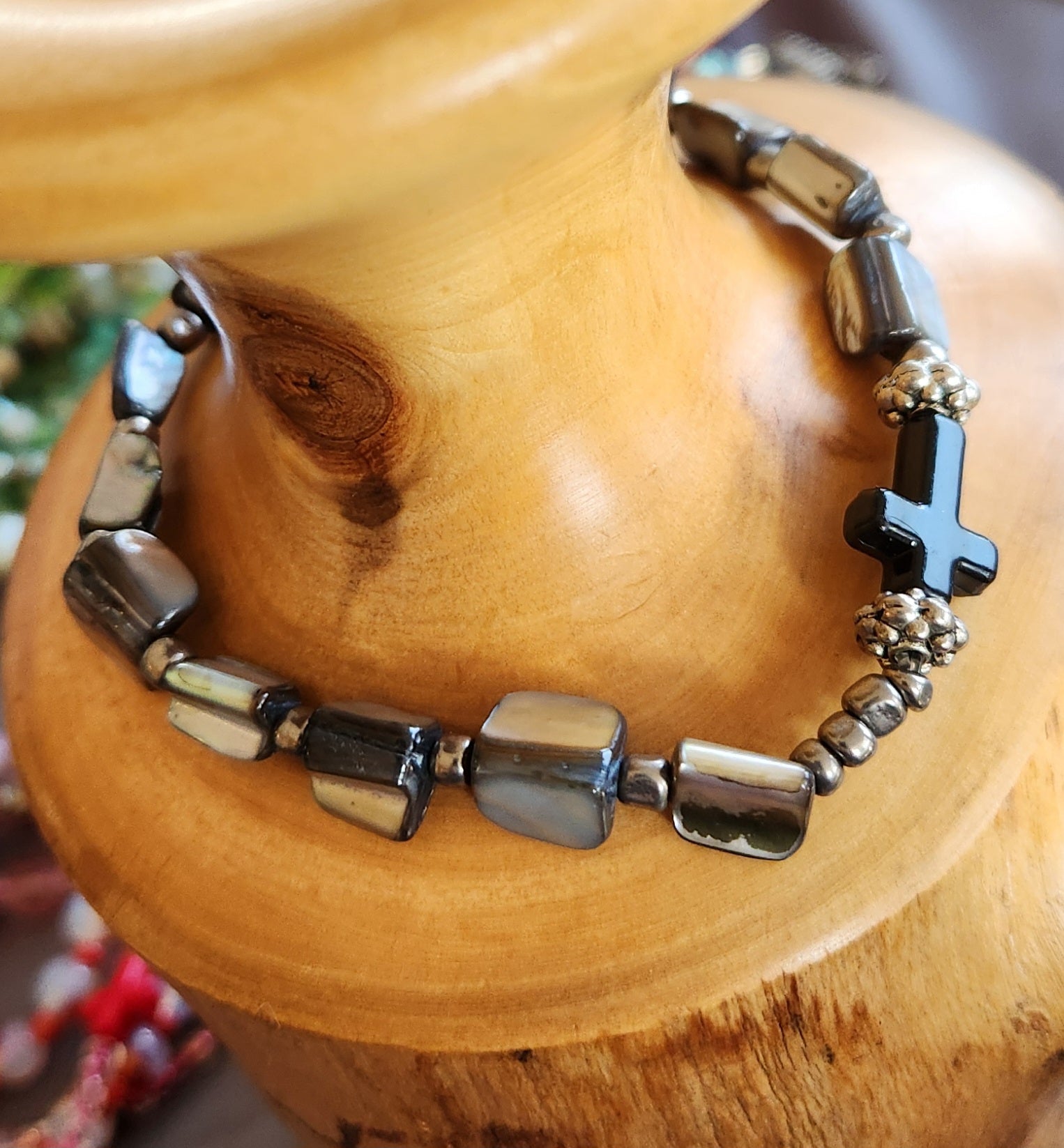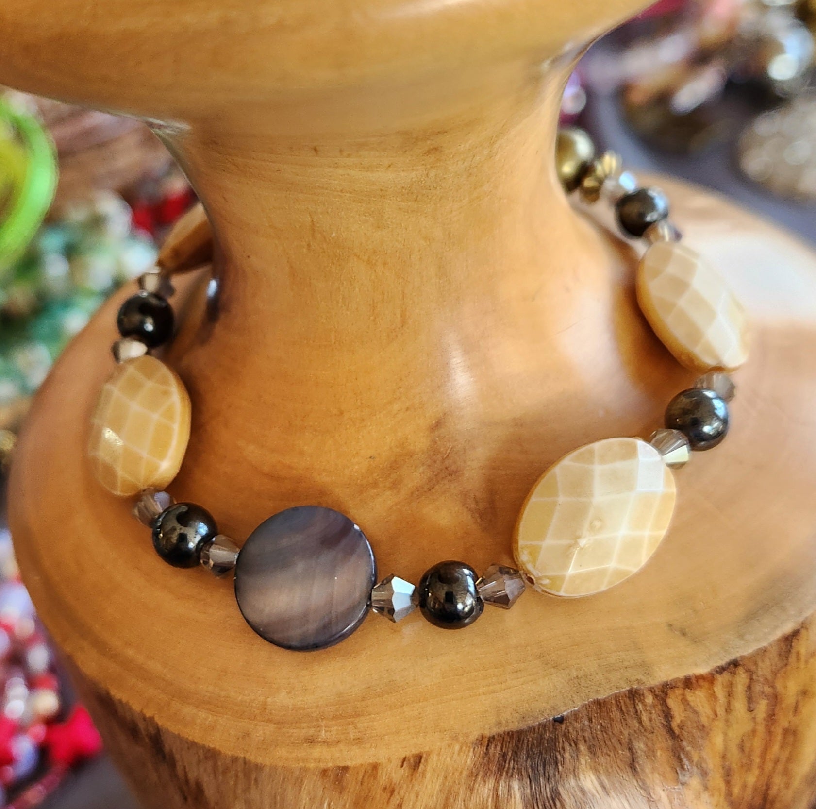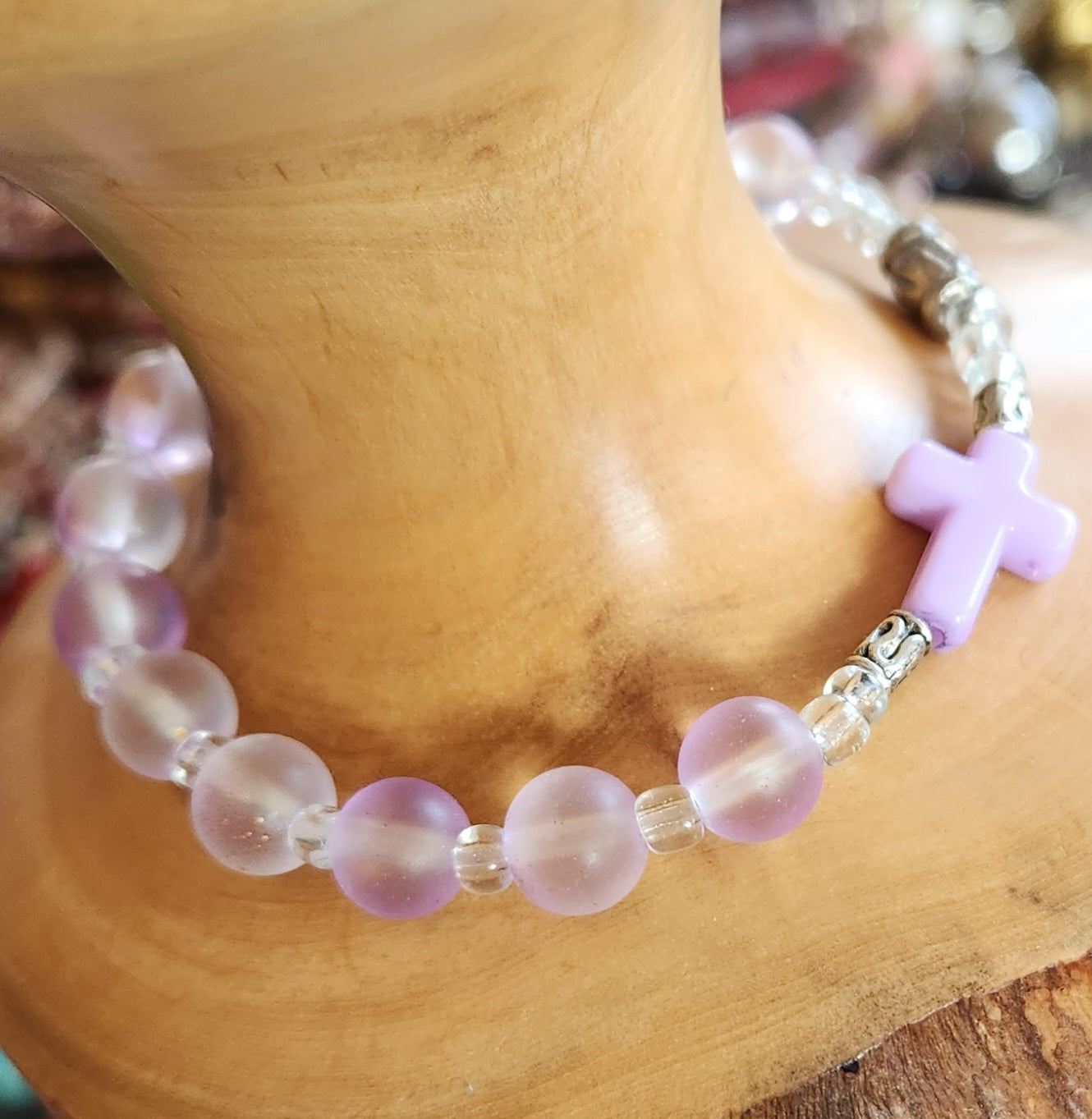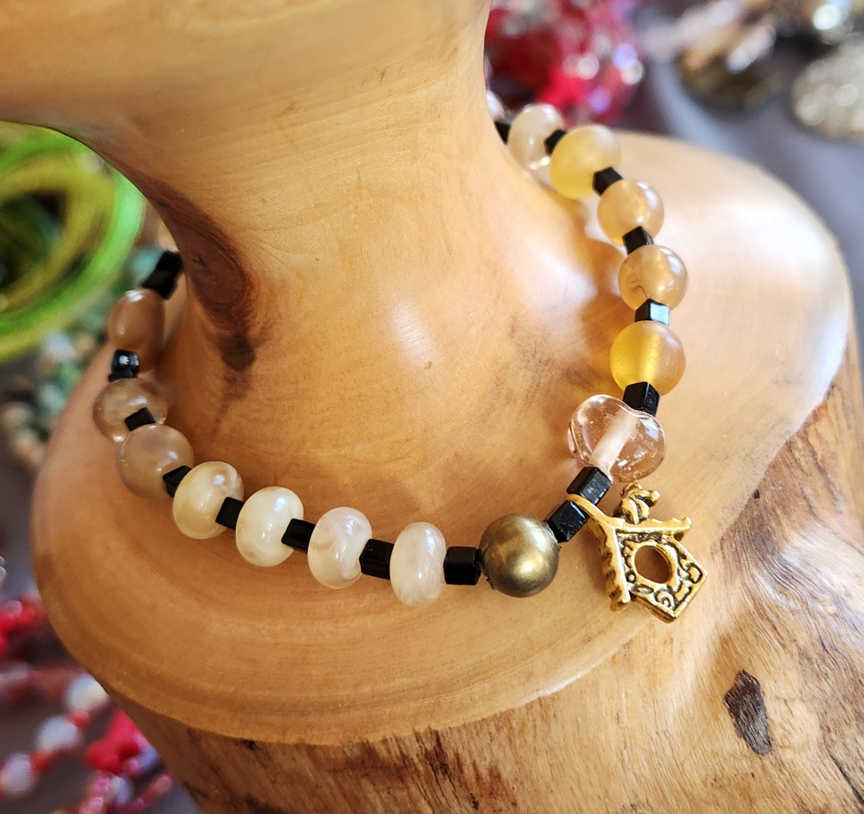 Shimmering glass and stone beads interweave with delicate acrylic accents on this stretch bracelet. Choose from a variety of colors to add a touch of elegance to any outfit. Comfortably sized at 7 to 7.5 inches for a perfect fit. Exude luxury and sophistication with every wear.